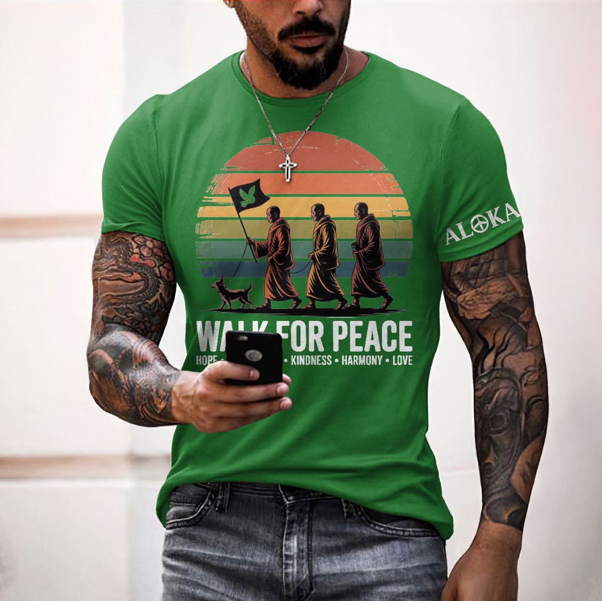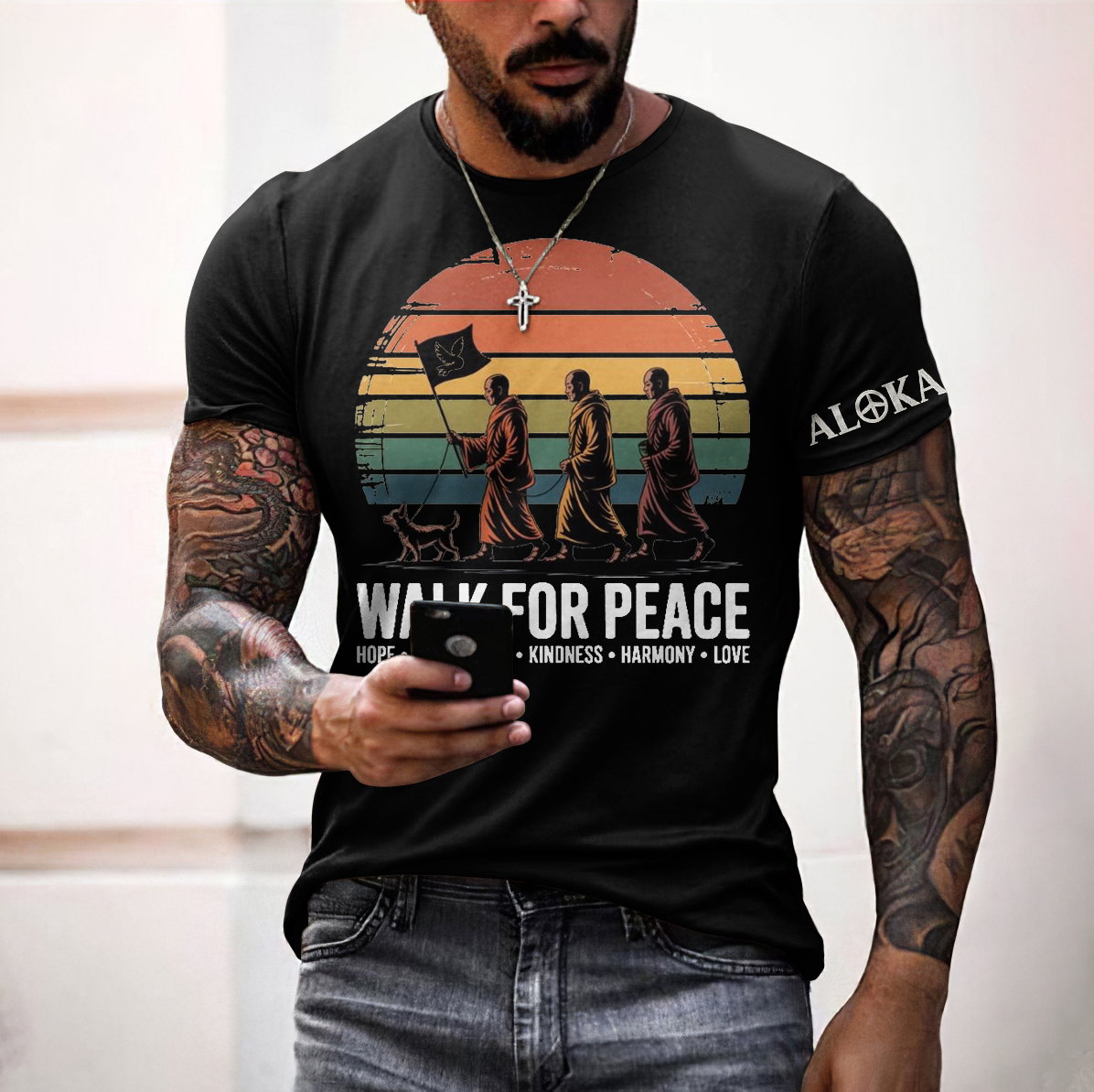 Pattern: Walk For Peace Monks With Aloka Dog